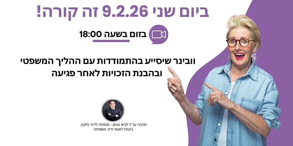 בהנחיית עו"ד לביא נעים– מומחה לדיני נזיקין, ביטוח לאומי ודיני משפחה