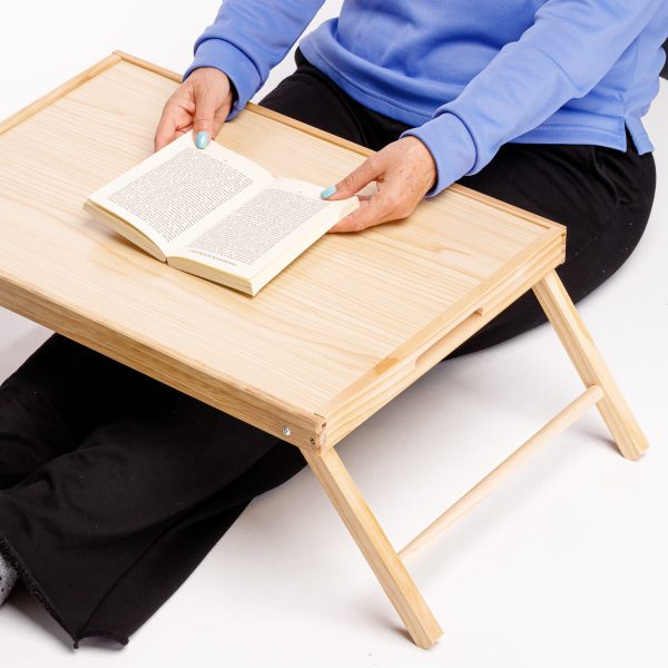 מגש מיטה עשוי עץ המותאם לשימוש בזמן שכיבה או ישבה, מגש למיטה מגיע אם אפשרות כיוונון של שבע זוויות שונות, רגלי המגש מיטה פונות כלפי חוץ לתוספת יציבות. מתאים להניח על המגש דברי אוכל או מחשב או ספר קריאה או להניח תחביבים כמו חריזה ותכשיטנות. מידות המגש : 60X40 ס”מ, מידות פתיחה של הרגליים : 80 ס”מ