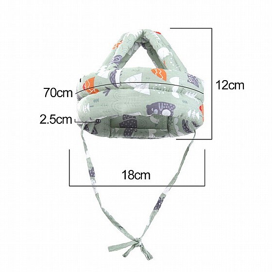 מגן על היקף הראש של הפעוט מפני חבטות ונפילות קלות. סגירת ולקרו מתכונן למידות 40-50 ס"מ קל משקל ומאוורר.