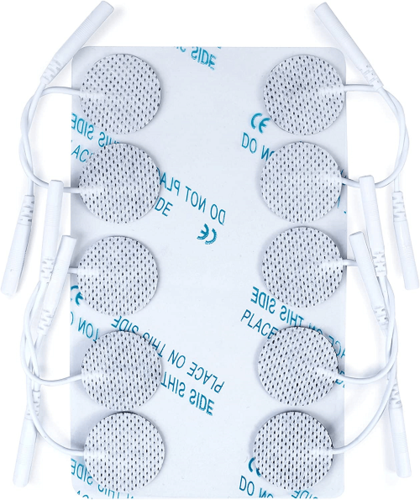 מארז 10 אלקטרודות-רפידות עגולות מודבקות בעלות ערך רב לשימוש חוזר. מתאים למכשירי טנס לשיכוך כאבים או למכשיר EMS לאימון שרירים.